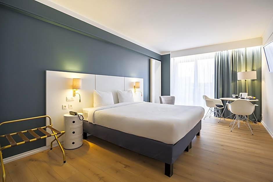 Standard Room with double bed, flat-screen TV with satellite channels, free WiFi, safe, courtesy tray, refrigerator, air conditioning, desk, balcony. Bathroom with shower, hairdryer and other accessories. Orientation towards Avenue Louise or rear side.
